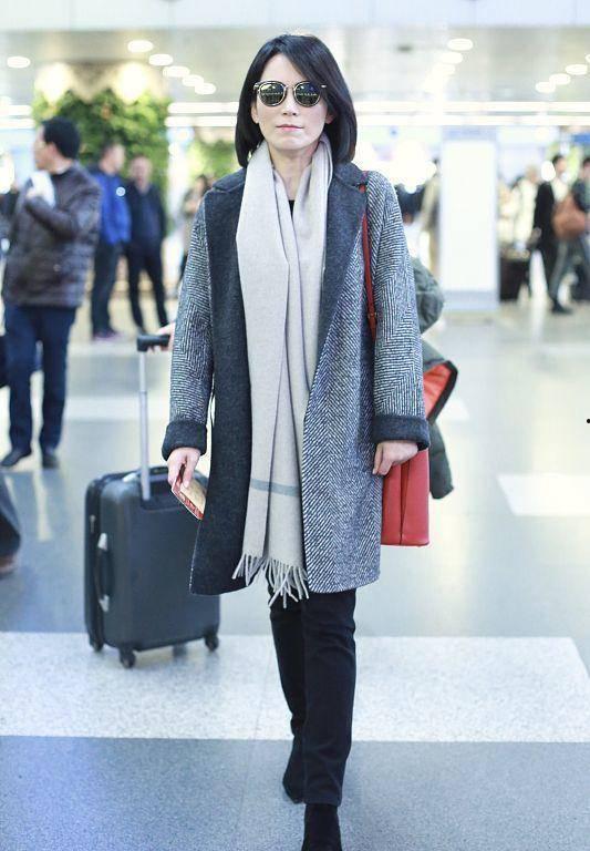 说到毛呢大衣,不得不提范冰冰。她身穿一件深灰色毛呢大衣,搭配黑色高领毛衣和牛仔裤,简约又不失优雅。这款大衣的领子设计独特,增加了层次感,让整体造型更加精致。